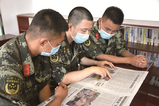 圖為武警北京總隊執(zhí)勤第八支隊二中隊組織官兵學習新修訂的人民武裝警察法。夏晨凱 陳麒駿 攝
