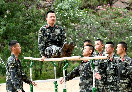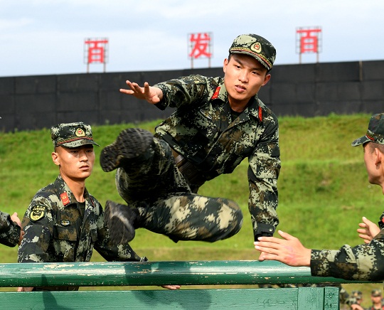 2021年5月26日,武警上饒支隊(duì)?wèi)?zhàn)士王子浩進(jìn)行四百米障礙訓(xùn)練。池小強(qiáng) 攝