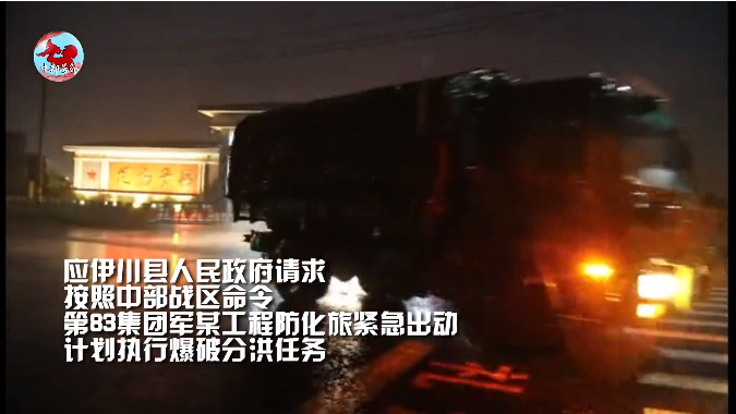 20日凌晨,河南省洛陽(yáng)市伊川縣平等鄉(xiāng)馬回營(yíng)村伊河攔水壩出現(xiàn)險(xiǎn)情。按照中部戰(zhàn)區(qū)命令,第83集團(tuán)軍某工程防化旅立即啟動(dòng)預(yù)案,炸藥、雷管、救生舟艇等爆破和防洪器材緊急裝車,75名官兵、15臺(tái)裝備車輛在最短時(shí)間內(nèi)集結(jié)完畢,火速馳援洛陽(yáng)市伊川縣任務(wù)區(qū),執(zhí)行爆破分洪任務(wù)。