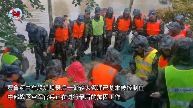 河南省開封市賈魯河祥符區(qū)段的兩處決口,情況危急。21日凌晨,空降兵某旅接到中部戰(zhàn)區(qū)命令,出動(dòng)650人,車輛38臺(tái),迅速趕赴現(xiàn)場(chǎng),官兵們采用人工和機(jī)械相結(jié)合方式,筑起長(zhǎng)1.5公里、高1.2米的沙袋墻,目前已完成大部分河堤加高任務(wù)。