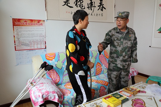 李小花患有內(nèi)風(fēng)濕病,雙腳行動不方便,張洪峰每次下鄉(xiāng)到師山村都會看望她,鼓勵她要堅強生活。李小花說,張政委身體有殘疾,他更能理解我的病痛,他的鼓勵更親切,讓我對生活樹立了信心。