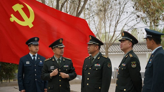 張洪峰和官兵一起接受紅色教育。李棟 攝