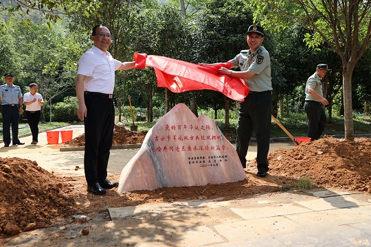 圖為吉安市軍地領(lǐng)導(dǎo)為井岡山大井“雙擁林”揭牌。 龍禮彬 攝
