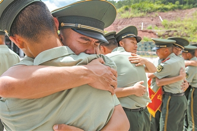 圖⑥:武警廣西總隊玉林支隊退伍老兵與戰(zhàn)友告別。 本報特約通訊員 余海洋攝