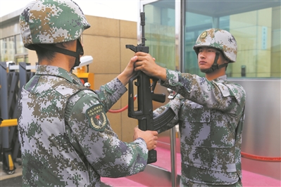 圖①:戰(zhàn)略支援部隊某部組織新老兵交接崗。 郭吉杭攝