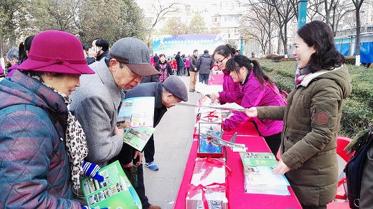 圖為張莉參加廣場(chǎng)宣傳活動(dòng)推介南京國(guó)防園。