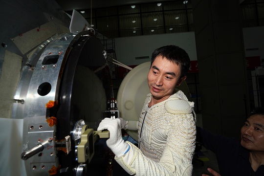 可是,當(dāng)?shù)灾緞偞┥稀帮w天”艙外航天服準(zhǔn)備漫步太空時(shí),艙門卻打不開。這時(shí),劉伯明遞過來一把開艙輔助工具,翟志剛用輔助工具撬了2次,拼盡全身力氣,用力一拉,終于打開了連接浩瀚太空的艙門。