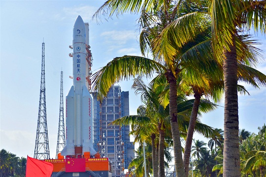 圖為長征五號和嫦娥五號組合體進(jìn)行轉(zhuǎn)運。