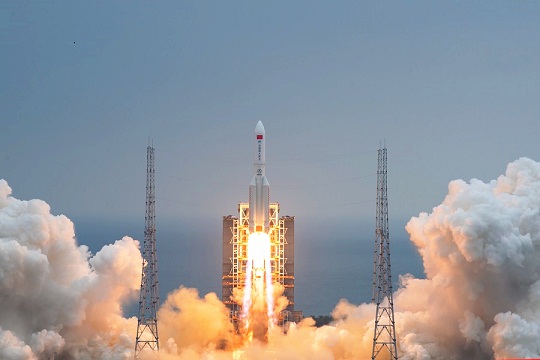 圖為空間站天和核心艙成功發(fā)射。
