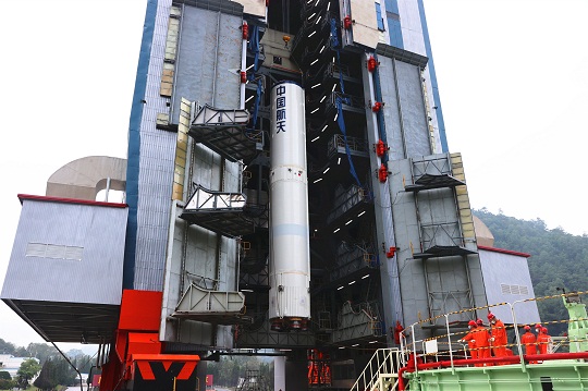 圖為開展長三乙火箭吊裝。