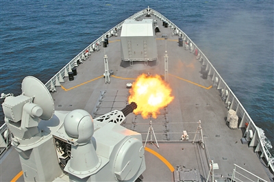 “上級(jí)命我艦立即對(duì)‘?dāng)场癁╊^陣地實(shí)施火力打擊!” 艦艇編隊(duì)剛抵達(dá)訓(xùn)練海域,某艦就接到任務(wù),官兵立即進(jìn)入戰(zhàn)斗狀態(tài)?!爸髋陂_始射擊?!币宦暳钕?,主炮迅速鎖定目標(biāo)并實(shí)施打擊。此時(shí),雷達(dá)戰(zhàn)位發(fā)現(xiàn)又有空中目標(biāo)快速接近艦艇?!案迸诮M織射擊!”指揮員研判戰(zhàn)場(chǎng)態(tài)勢(shì)后,果斷下達(dá)攻擊命令。隆隆炮聲中,來襲目標(biāo)被擊中,空中威脅解除。