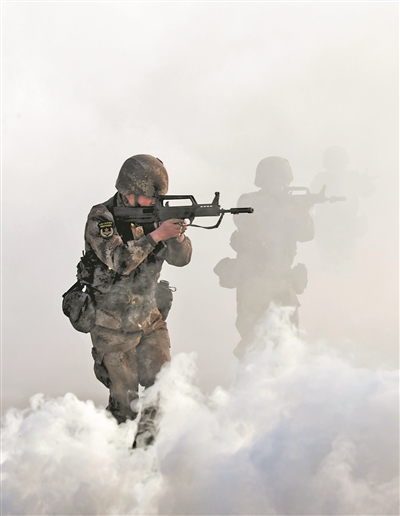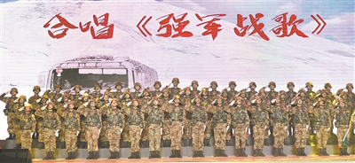 合唱《強軍戰(zhàn)歌》,激發(fā)戰(zhàn)斗精神。