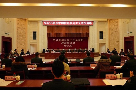 圖為國(guó)防大學(xué)政治學(xué)院西安校區(qū)召開學(xué)習(xí)貫徹習(xí)近平法治思想理論座談會(huì)。冉慶 攝