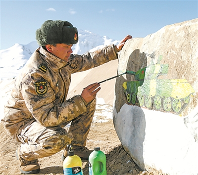 紅船起航、戰(zhàn)車轟鳴、雪地巡邏……在形狀各異的喀喇昆侖高原石上,帕肉克和戰(zhàn)友們精心繪制了展現(xiàn)光榮黨史和高原駐訓(xùn)生活的畫作,讓冷冰冰的石頭變得生動(dòng)鮮活起來(lái)。官兵都說(shuō),“石頭畫”創(chuàng)作,不僅豐富了駐訓(xùn)生活,更為他們留下了難忘的記憶。