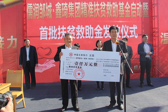 圖為2015年,出資1000萬成立山東省首家精準(zhǔn)扶貧救助資金,面向周邊群眾開展精準(zhǔn)救助。