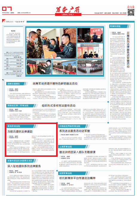 該支隊(duì)調(diào)研發(fā)現(xiàn),官兵個(gè)人及家庭涉法問(wèn)題日益增多,支隊(duì)法律骨干力量相對(duì)薄弱。為此,他們積極邀請(qǐng)駐地法律機(jī)構(gòu)定期來(lái)隊(duì)開(kāi)展“送法進(jìn)軍營(yíng)”活動(dòng),宣講法律法規(guī)、培訓(xùn)法律骨干。