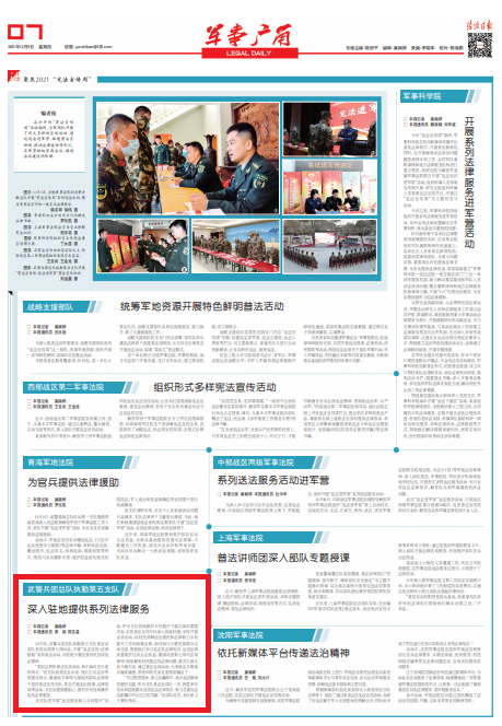 “類似這樣的普法宣講活動,我們每年至少組織兩次。”該支隊政委安會永說,他們立足法治軍營建設(shè)特點,邀請地方律師與抽組的部隊法律骨干組成普法宣傳分隊,常態(tài)開展法治授課、法律咨詢等活動,為官兵提供最貼心、最有針對性和操作性的法律服務(wù)。