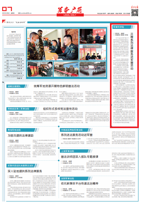 今年以來,軍事科學(xué)院持續(xù)組織開展系列法律服務(wù)進軍營活動,及時運用法律武器解決在軍事科研、練兵備戰(zhàn)中遇到的問題。