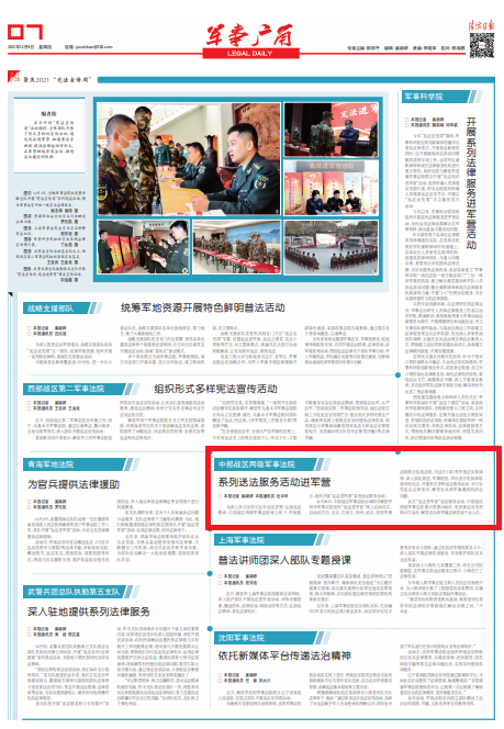為深入學(xué)習(xí)宣傳習(xí)近平法治思想,弘揚憲法精神,中部戰(zhàn)區(qū)兩級軍事法院線上線下、軍地配合,組織開展“憲法進軍營”系列送法服務(wù)活動。