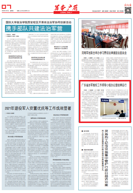 廣東省涉軍維權(quán)工作辦公室依托軍地優(yōu)質(zhì)司法資源,促使涉法問題在法治框架內(nèi)快速有效解決,最大限度維護(hù)國防利益和軍人軍屬合法權(quán)益。