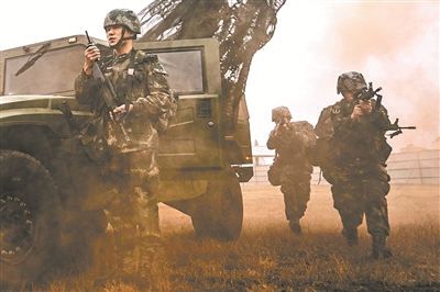 突然,新的“敵”情傳來:“巡邏哨兵遭小股‘敵特’襲擊……”指揮員對戰(zhàn)場態(tài)勢進行判斷后,迅即派警戒小組展開搜捕。
