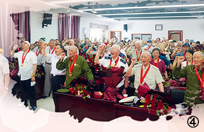圖④:“光榮在黨50年”紀念章頒發(fā)儀式現(xiàn)場,老黨員重溫入黨誓詞。