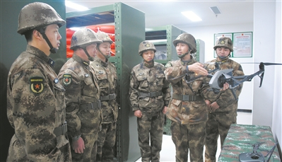 王勇軍(右二)為民兵應(yīng)急分隊(duì)隊(duì)員講解無人機(jī)操控方法。逯毅 攝