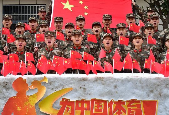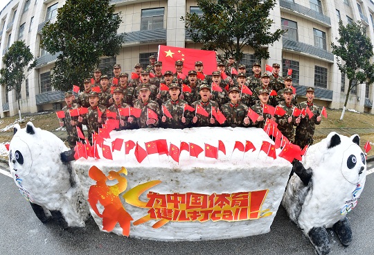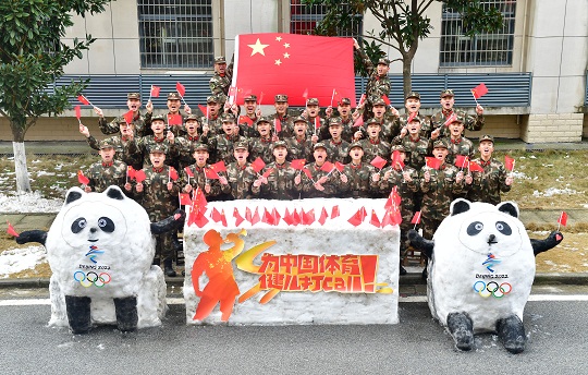 “為中國體育加油!為奧運健兒加油……”2月8日,武警湖北總隊執(zhí)勤支隊官兵在休息時間用積雪堆出吉祥物冰墩墩,手持國旗集體打卡,為冬奧健兒加油,鼓勵大家學習奧運精神,矢志練兵備戰(zhàn)。