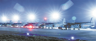 夜幕降臨,機場航燈閃爍。隨著指揮員一聲令下,多架運輸機再次接續(xù)起飛,在預(yù)定空域集結(jié)編隊。隨后,借著茫茫夜色掩護,編隊向目標(biāo)空域隱蔽機動,展開地面目標(biāo)識別等課目訓(xùn)練……