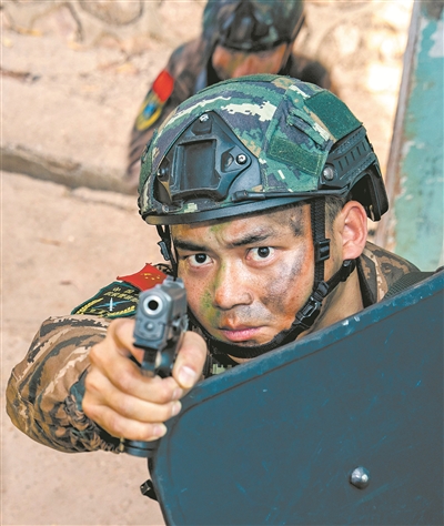 2月上旬,桂中腹地。一棟廢棄樓房內(nèi),武警特戰(zhàn)隊員正在進(jìn)行隱蔽突擊訓(xùn)練?!跋旅婵次沂痉?!”現(xiàn)場組織教學(xué)的是武警廣西總隊機動支隊參謀邱健。他的動作精準(zhǔn)迅捷,勢如猛虎,贏得官兵一片叫好聲。