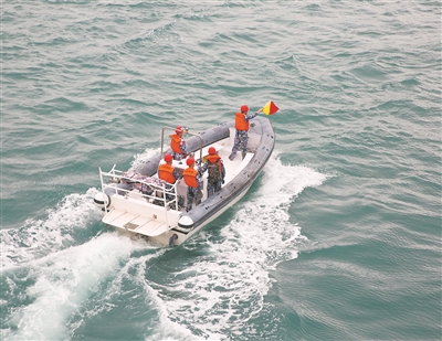 圖①:小艇前出模擬可疑目標(biāo)。