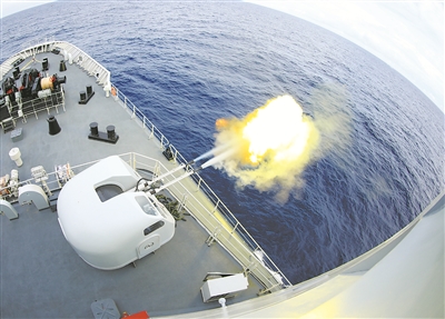 圖④:艦炮對(duì)海上目標(biāo)實(shí)施打擊。