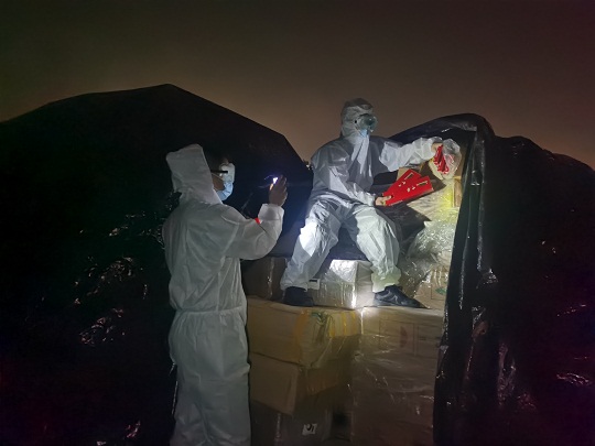 3月14日清晨6時許,該局鐵山港工作站接群眾報警稱,在北海市鐵山港區(qū)興港鎮(zhèn)附近海域有1艘擱淺木質(zhì)船舶,其上有大量貨物且被篷布遮蓋,疑為走私船舶。接警后,該站迅速調(diào)派兩隊執(zhí)法員對相關(guān)海域進行海陸聯(lián)合搜查。上午9時許,海警執(zhí)法員在興港鎮(zhèn)淡水口村附近海域發(fā)現(xiàn)該艘擱淺木船,隨即對現(xiàn)場進行封控,并通知防疫部門進行防疫消殺。當日晚8時許,經(jīng)防疫消殺后現(xiàn)場檢查,木船上裝載有“中華”“荷花”“芙蓉王”等品牌香煙一批,現(xiàn)場未發(fā)現(xiàn)該木船及所裝載香煙的任何相關(guān)合法手續(xù),亦無人對木船及香煙主張權(quán)利。因涉嫌走私,海警執(zhí)法員依法現(xiàn)場查扣涉案木船1艘,查獲涉嫌走私香煙12576條。