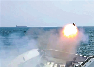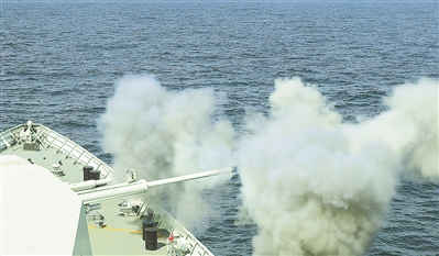 圖①:參訓(xùn)艦艇主炮對(duì)海射擊。