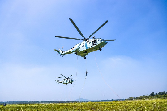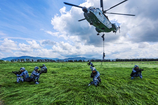 圖為到達(dá)任務(wù)地域,突擊組實施機滑降。