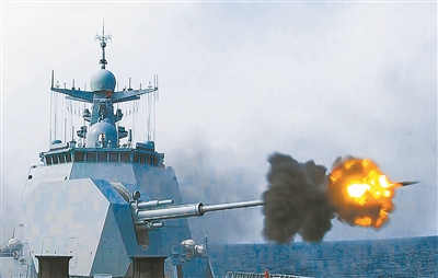 “前方發(fā)現(xiàn)‘敵’艦!”編隊剛剛抵達目標海域,戰(zhàn)斗警報驟然響起,官兵迅速奔向戰(zhàn)位。戰(zhàn)艦占領主炮射擊陣位后,各戰(zhàn)位緊密配合,精準操作,對目標實施連續(xù)炮火打擊。