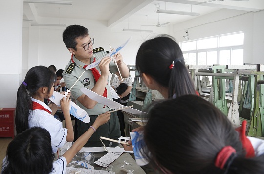 圖為2018年某部官兵深入結(jié)對學校為孩子們講授航模知識。張俊睿 攝