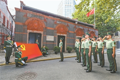 夏日申城,滿目綠色。站在武警上海市總隊執(zhí)勤第四支隊十中隊營房頂層望去,一座紅色基調浸染的石庫門建筑,在現(xiàn)代都市建筑群中格外醒目。那里,正是黨的一大會址。