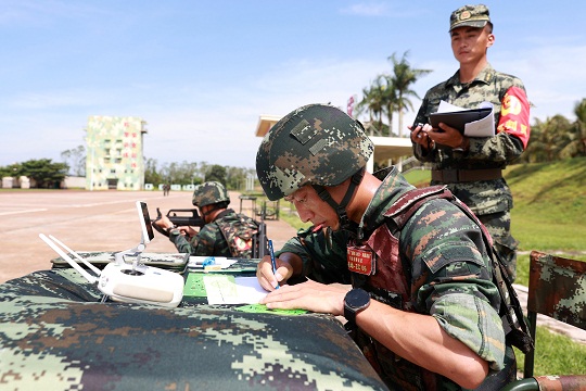 圖為參賽隊員在演練中進(jìn)行偵察繪圖。雷轍 攝
