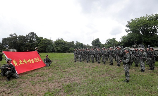 圖為組織官兵向連旗宣誓。湯方律 攝