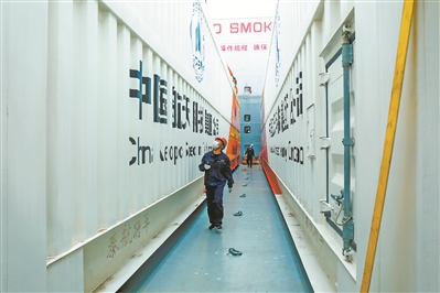 夜色漸濃,當(dāng)最后一個箱子對準平臺底板,“咔……”16個卡扣嚴絲合縫,江成波結(jié)束了一天的工作。