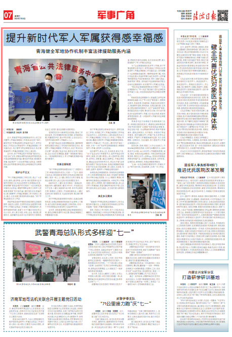 “軍人軍屬法律援助工作的目的,是讓廣大官兵安心服役、建功軍營。近年來,我們把貫徹習近平強軍思想和習近平法治思想作為首要政治任務,深刻理解‘要依法維護好實現好廣大官兵和優(yōu)撫對象的合法權益,增強軍事職業(yè)吸引力和軍人使命感榮譽感’的豐富內涵,緊盯部隊官兵普遍關切,著力破解軍人軍屬法律援助工作中的難點、堵點、痛點,讓官兵傾力服務部隊練兵備戰(zhàn)。”西寧軍事法院院長齊蘭軍說。
