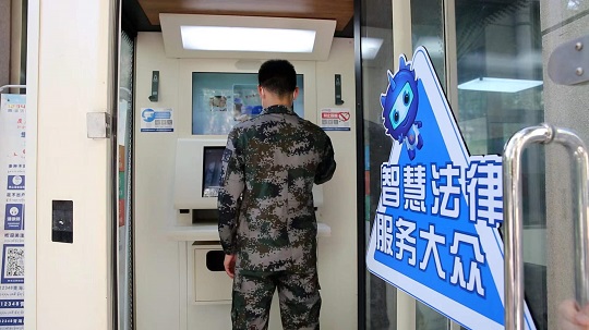 圖為智能法律服務終端產品為官兵提供法律服務。