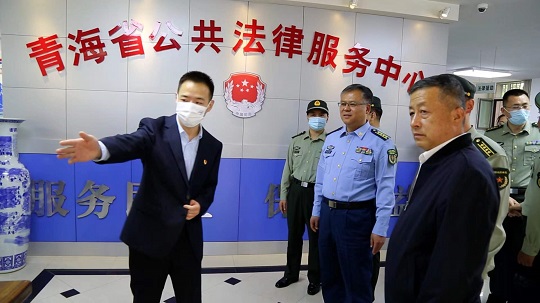 圖為青海軍地領導到省公共法律服務中心調研。