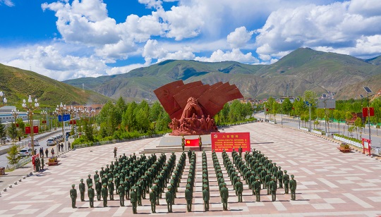 武警玉樹支隊(duì)黨委組織黨員干部來(lái)到抗震救災(zāi)紀(jì)念館,回顧當(dāng)年抗震救災(zāi)的艱難歷程,感悟?yàn)?zāi)后重建的輝煌成就。