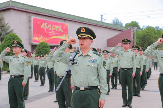 圖為武警青海總隊(duì)少將政治委員楊志強(qiáng)領(lǐng)誓。朱曉坷 攝