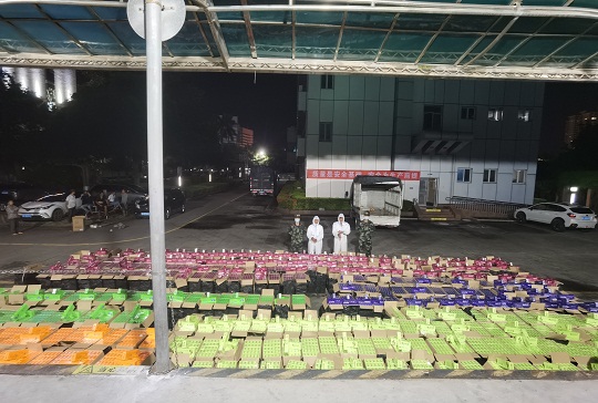 針對臺風(fēng)“暹芭”剛過境,走私分子可能會心存僥幸利用較低潮位從事走私活動的現(xiàn)實(shí)情況,該局科學(xué)研判,嚴(yán)密部署執(zhí)法力量加強(qiáng)轄區(qū)管控。7月6日晚23時(shí)許,在轄區(qū)海域蹲守的海警執(zhí)法員發(fā)現(xiàn)有不明“大飛”蹤跡,經(jīng)過圍追堵截最終將涉嫌走私“大飛”一舉抓獲,現(xiàn)場抓獲涉案嫌疑人兩名,查獲涉嫌走私香煙一批,該船后置5臺“雅馬哈”機(jī)頭,總馬力超1000匹。經(jīng)合浦縣疾控中心對上述涉案物品及人員進(jìn)行消殺、核酸檢測,結(jié)果均為陰性。經(jīng)清點(diǎn),查獲美國“百樂”牌香煙約400件,共計(jì)1.9萬余條,總案值約500萬元。目前,該案件正在進(jìn)一步深挖擴(kuò)線中。
