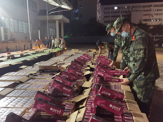 圖為清點(diǎn)涉案香煙。