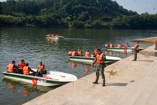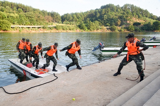 針對駐地雨季歷時較長、降雨量偏多,可能出現(xiàn)持續(xù)性暴雨過程,防汛形勢較為嚴(yán)峻的情況,此次集訓(xùn)把環(huán)境設(shè)險,把情況設(shè)全,把練技術(shù)、練心理與練作風(fēng)結(jié)合起來,按照理論講解與實(shí)際操作相結(jié)合、考核評比與綜合訓(xùn)練相結(jié)合的方法,對沖鋒舟機(jī)械理論、舷外機(jī)的安裝與啟動、故障排除、船艇直行、S型航行、水上營救等內(nèi)容進(jìn)行強(qiáng)化訓(xùn)練。