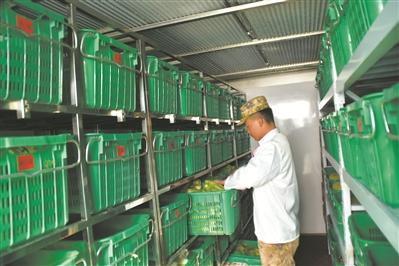 本報訊 記者孫興維、通訊員王沛報道:盛夏時節(jié),記者從正在海拔4000多米高原駐訓(xùn)的新疆軍區(qū)某部獲悉,上級為他們配發(fā)的集裝箱型野戰(zhàn)菜窖好用耐用,使得難儲葉菜保鮮時間延長、保鮮效果更好。